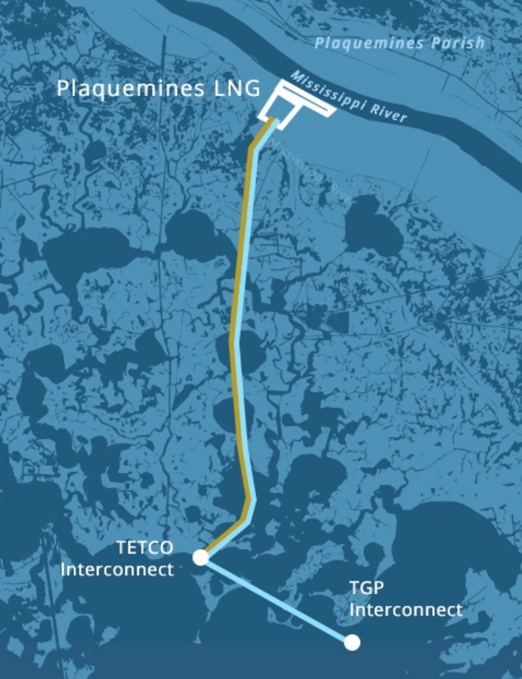 - For segment 1, an approximately 15-mile long, 42-inch diameter pipeline and appurtenant facilities, to deliver gas to the Plaquemines LNG project from new interconnections with Tennessee Gas Pipeline Company, LLC and Texas Eastern Transmission, LP located offshore, southwest of the terminal site (the “Southwest Lateral TGP”)